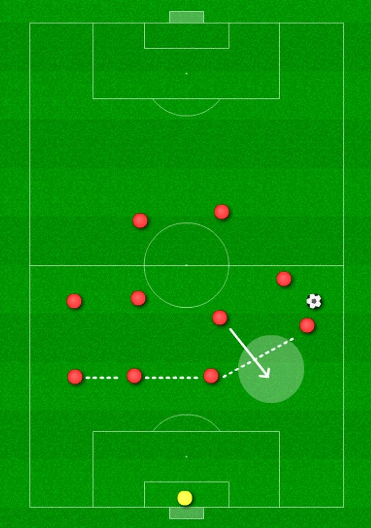 Когда мяч на фланге, и на него реагирует (выдвигается) фланговый защитник, у него за спиной образовывается зона, которую по идее должен заполнить вингер или кто-то из центра, потому что туда может ворваться ещё один игрок (в противном случае зону могут перегрузить, кроссы оттуда очень опасны).