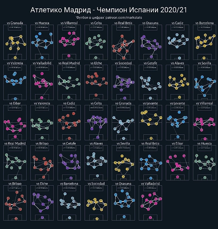 В первую часть сезона можно занести четыре матча: с "Гранадой", "Уэской", "Вильярреалом" и "Сельтой". И уже там проявлялись некоторые новшества по сравнению с предыдущим сезоном: например, против "Гранады" 38% атак "Атлетико" прошло через центр — основной ориентир был именно на то, чтобы доставлять мяч в штрафную удобным для оставшихся нападающих образом.