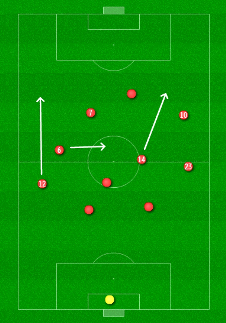 Что касается перехода на 4-4-2 в рамках такой системы, то происходил он при прессинге и, как правило, за счёт выдвижений Тома Лемара на одну линию с Луисом Суаресом.