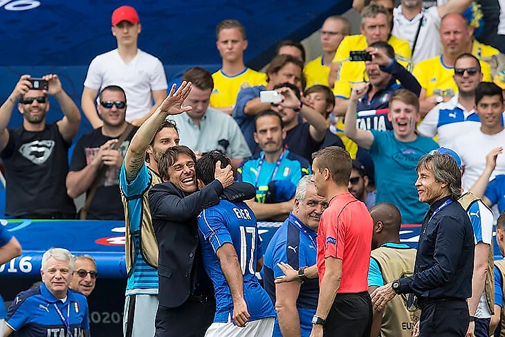 Можно по-разному относится к игре и тактике Конте, но он точно фанатик своего дела и может зарядить этим своих игроков. Хорошо помню, как на Евро-16 Италия Конте грохнула звездных и распиаренных бельгийцев, которые уже тогда все играли в топ-клубах. А тут какие-то Пароло, Джаккерини и Пелле. Итальянцы ничего не дали сделать Азару и Ко, а затем сначала Бонуччи сделал гроссмейстерский заброс вперед за спины защитникам на маленького и юркого Джака, а в концовке Пелле добил бельгийцев. Это был образцовый матч с точки зрения использования тренером своих игроцких ресурсов и тактического исполнения игроками задумок тренера. Вот это была игра Конте