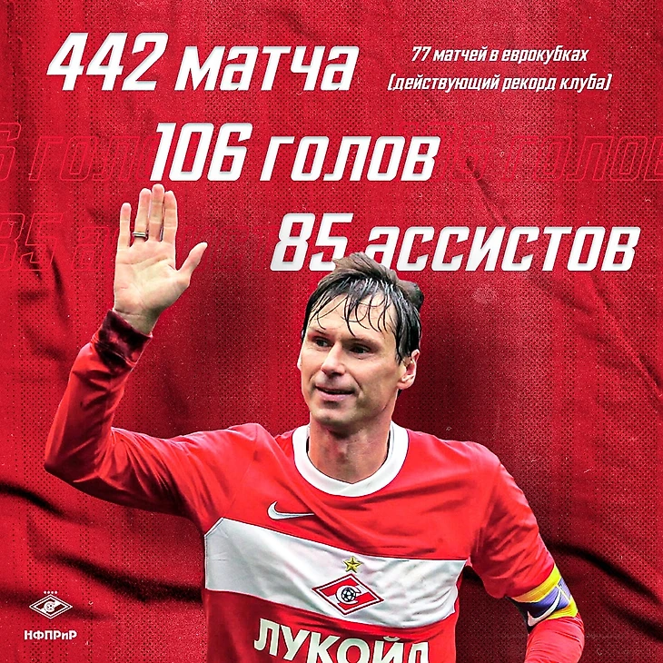 С 1995 по 2008 год воспитанник красно-белых провел за родную команду 442 матча. Это второй показатель за всю историю «Спартака»: больше сыграл только Фёдор Черенков.