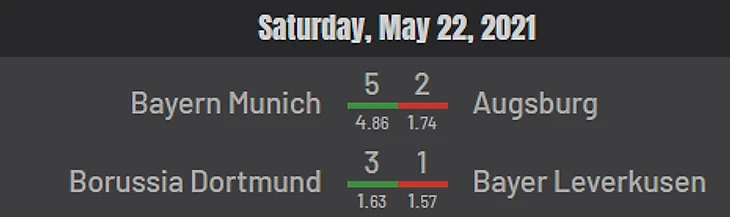В последнем туре Бундеслиги “Бавария” разгромила соседей из “Аугсбурга” 5-2 с коэффициентом xG 4,86 и xGA 1,74. То есть забила и пропустила +/- на то, что наиграла. Ее показатель xPTS будет максимально близок к 3. А вот в поединке Дортмунда и Леверкузена успех праздновали хозяева с минимальным перевесом по данным продвинутой статистики, здесь xPTS будет около 1,5 у обоих коллективов. Очки здесь имеют дробное значение, ведь нужно понимать, что xPts — это не реальное количество баллов, на которое наиграла команда, а некий показатель качества игры. Безусловно, обычные очки, присуждаемые за победу/ничью — это тоже показатель качества, но значение этого показателя распределяется дискретно, то есть принадлежит множеству [0, 1, 3].