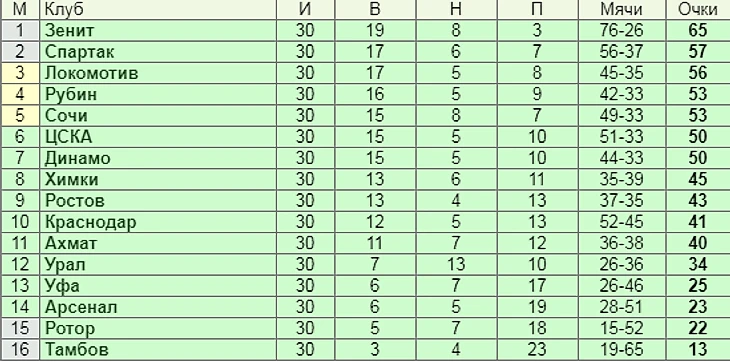 Петербуржцы абсолютно заслуженно стали чемпионами. “Железнодорожники” хакнули продвинутую статистику и чуть было не попали в ЛЧ. Об упущенных возможностях могут пенять ЦСКА, “Краснодар”, “Динамо”, их места в еврокубках займут более удачливые “Спартак”, “Рубин” и “Сочи”. “Ротор” и “Тамбов” заслуженно вылетели.