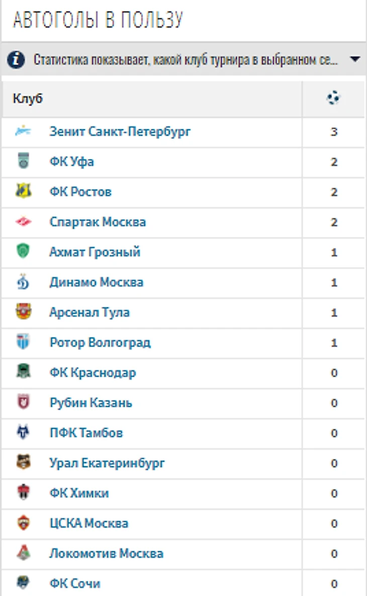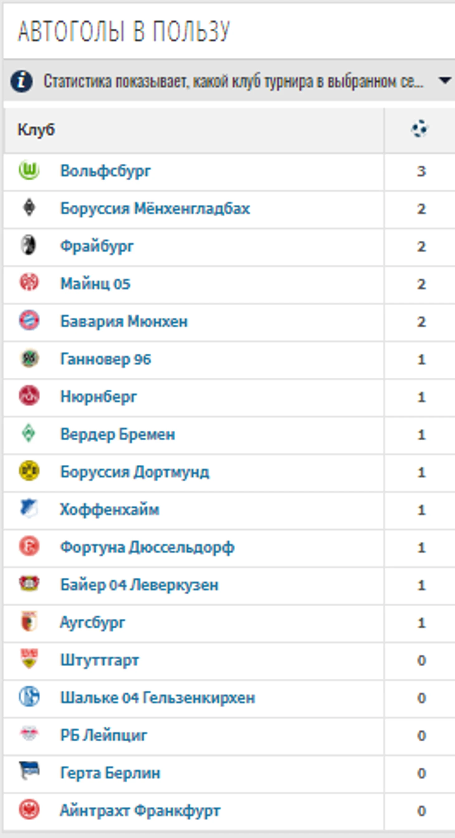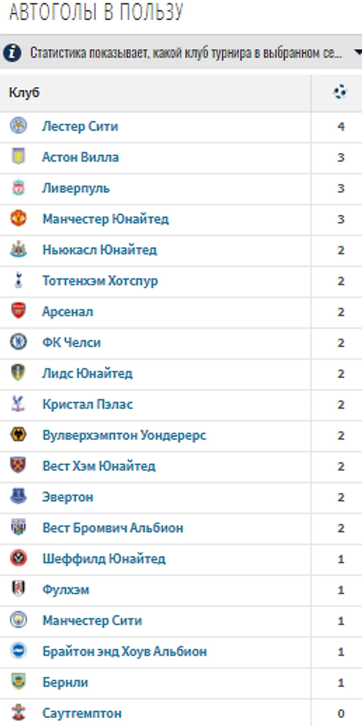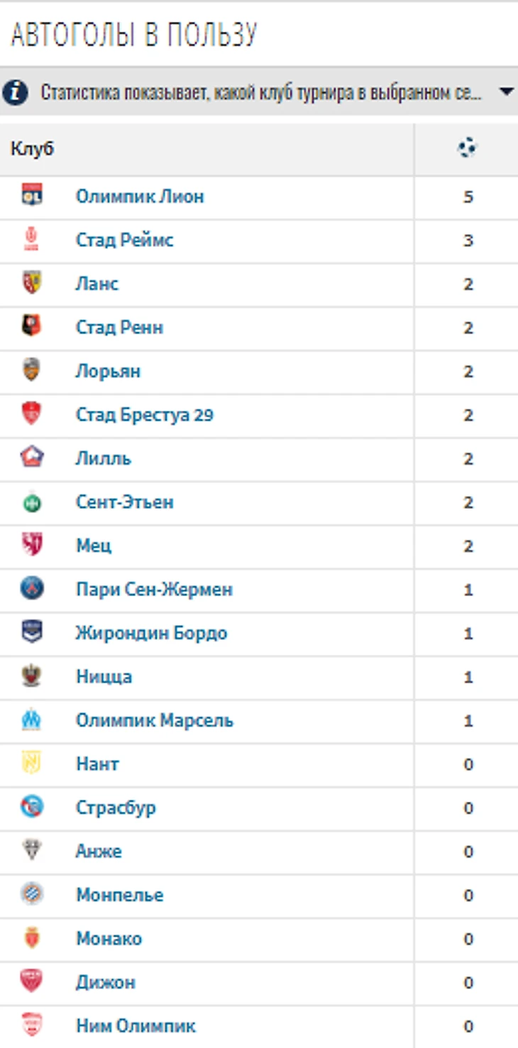 По полученным автоголам лидирует “Лион” в 2,5 раза опережая основной пул команд во Франции.