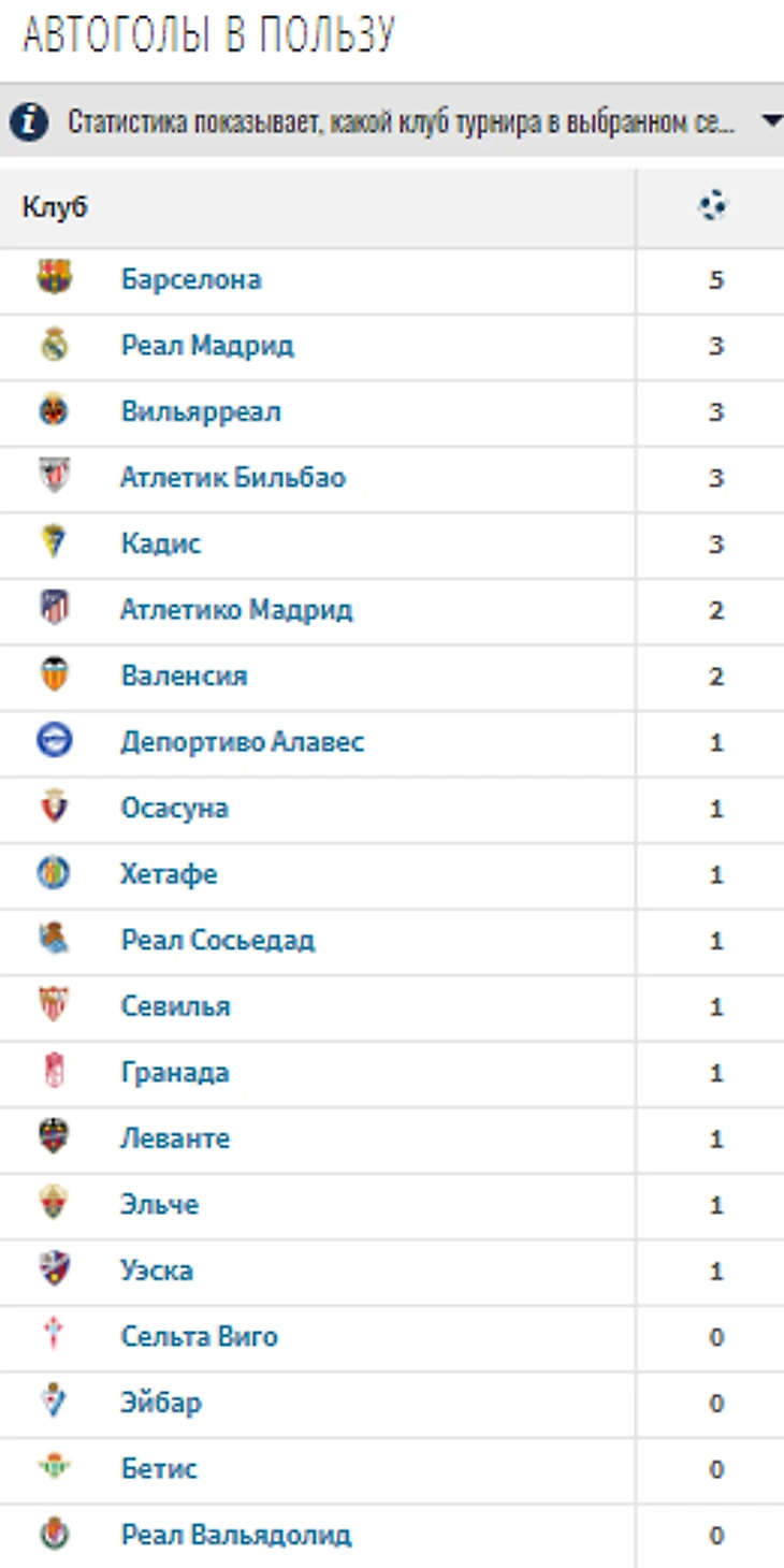 Каталонцы аж 5 раз заставили соперников забить в свои ворота – один из лучших показателей во всех топ-лигах.