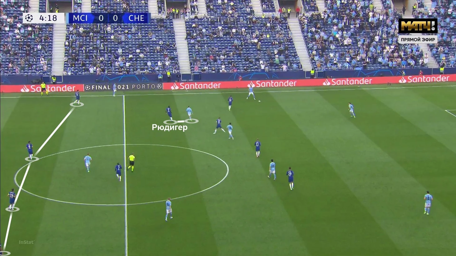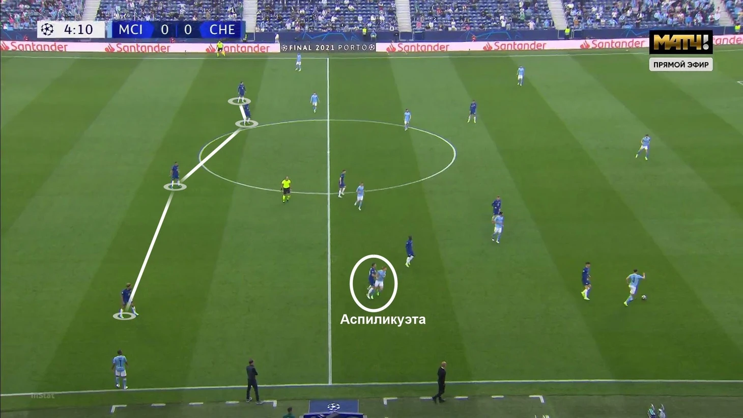 Линия «Сити» тут вне кадра (хотя могла бы поджимать прессинг) – образуется дыра в опорной зоне. Именно Тимо вынуждал их действовать осторожнее: