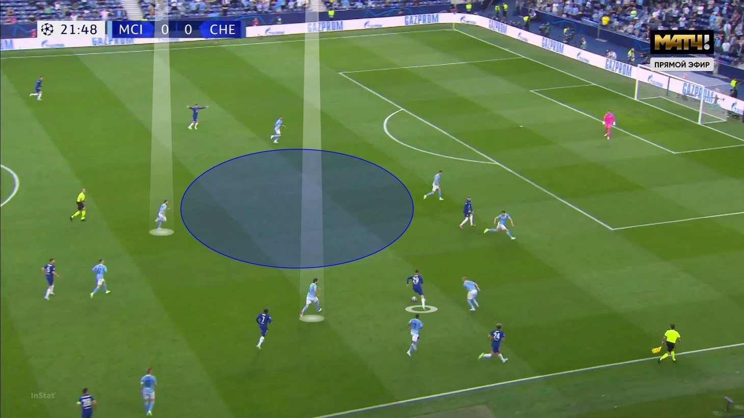 Несколько примеров. Здесь «Челси» получает выгодную ситуацию при подборе (дыра в опорной) после дальнего паса: