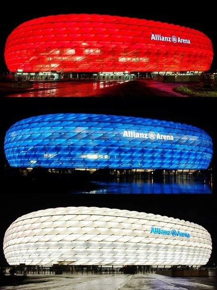 И со временем прервалась красивая традиция, связанная с этим стадионом: цвет подсветки арены свой для каждой из команд, которая проводит матч в статусе хозяина: красный для «Баварии», синий для «Мюнхена 1860» и белый, если на арене играет сборная Германии.