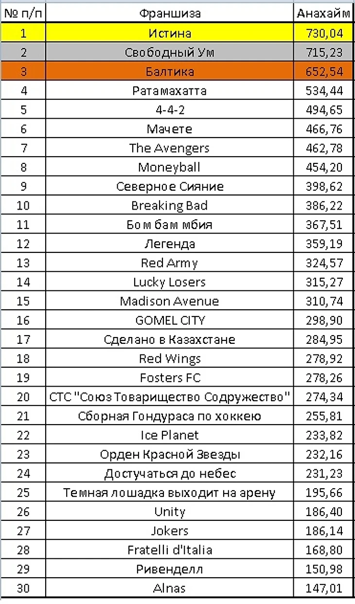 Итак, хорошенько перемешав все имеющиеся компоненты на выходе мы получаем Рейтинг Анахайма по итогам сезона 2020/2021: