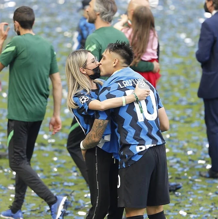 Лаутаро Мартинес с возлюбленной Августиной и дочкой Ниной.