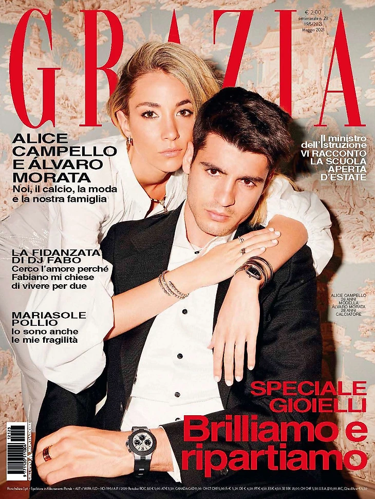 Нападающий «Ювентуса» Альваро Мората и его супруга Аличе Кампелло приняли участие в фотосессии для майского номера “Grazia”.