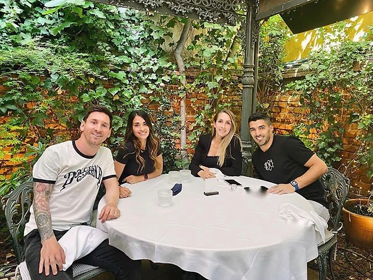 Лео Месси и Луис Суарес с любимыми жёнами.