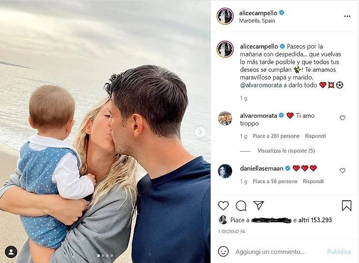 Альваро Мората был вызван Испанией в связи с чемпионатом Европы, который начнется менее чем через месяц, и по этой причине он позволил себе последние несколько часов отдыха со своей супругой Алисой Кампелло.