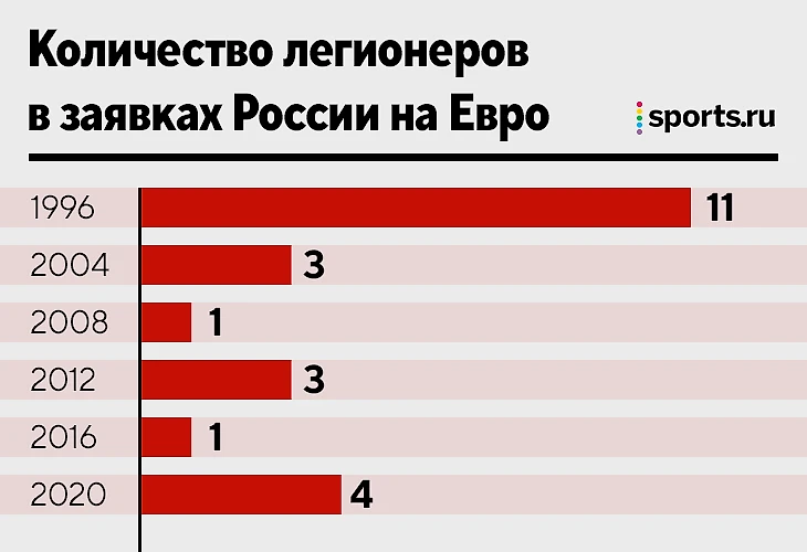 • Всего по одному легионеру было в составах сборной России на Евро-2008 (Саенко из «Нюрнберга») и Евро-2016 (Нойштедтер из «Шальке»).