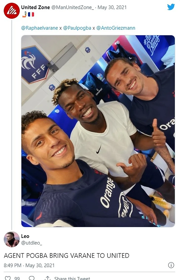 Погба выложил фото с Вараном - болельщики «МЮ» надеются, что это знак