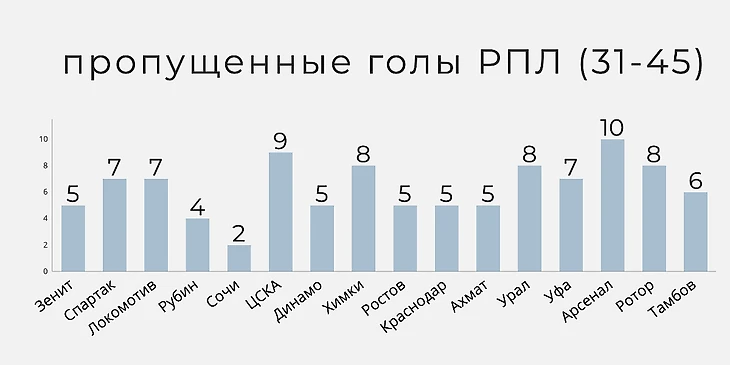 Завершение первого тайма явно складывались не в пользу обороны ЦСКА - 27% (9) всех своих мячей они пропустили в последние 15 минут перед перерывом. В процентном соотношении это наихудший показатель среди всех команд, в количественном - хуже только у Арсенала (10 мячей). Лучший показатель у Сочи - всего 2 мяча они пропустили перед перерывом.