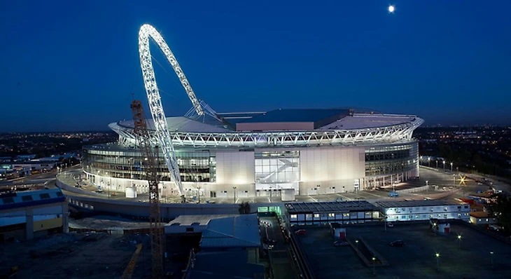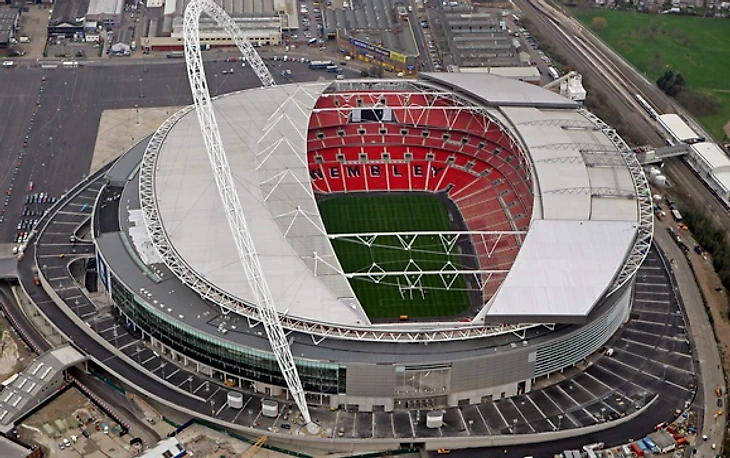 Футбольный стадион Уэмбли — второй по величине в Европе, полное название «Новый Уэмбли». Был построен на месте одной из самых известных спортивных арен мира — «Старого Уэмбли» или «Эмпайр Стейдиум» ( «Имперский стадион»), открытой в 1923 году. Демонтажные работы начались в 2003 г., а торжественное открытие новой арены произошло только 19 мая 2007 года. Интересно, что первые матчи проводились в марте, но без зрителей, поэтому официальная дата открытия отличается от фактической.