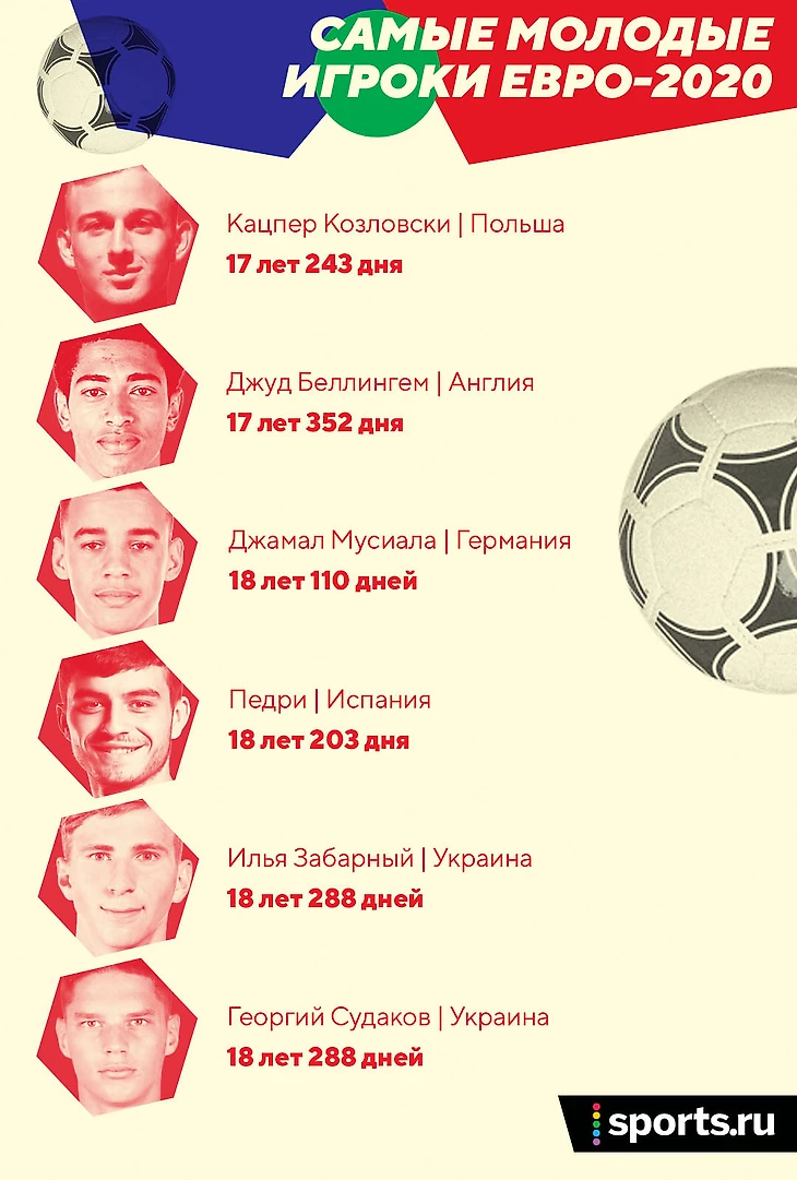 Пока самым молодым игроком, сыгравшим на Евро, остается Йетро Виллемс – в 2012-м голландский защитник дебютировал на большом турнире в возрасте 18 лет 71 дня. Его могут обогнать только Козловски и Беллингем.