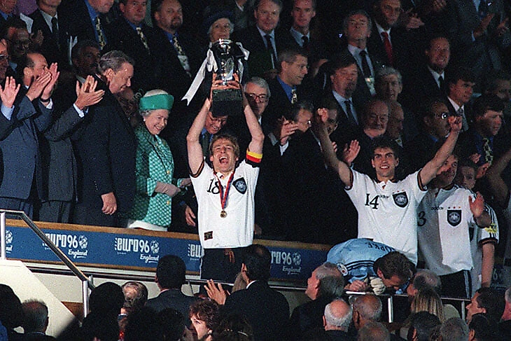 В это сложно поверить, но Германия не выигрывала чемпионат Европы уже 25 лет. Бундестим вот уже три турнира подряд доходит как минимум до полуфинала Евро, но в решающих матчах что-то не складывается. Совсем скоро мы станем свидетелями еще одной попытки. А пока вспомним самое интересное из чемпионского пути немцев в 1996 году.