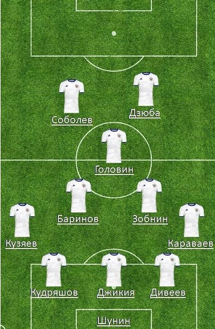 Далее – полузащита. Наверное, выбор будет не очень ожидаемый, но... Зобнин, Баринов и Головин. Первые двое составляют хорошую пару опорников, которые могут подниматься вперед и бить издали – вспомните гол Зобнина в ворота "Ахмата" или гол Баринова в ворота "Байер" – удар у обоих поставлен. Они очень работоспособны и много бегают, и их пару идеально дополняет Александр Головин. По сути, он создал единственный мяч сборной в ворота Польши – отдал гениальный пас, разрезавший всю оборону. Он техничен, быстр, будет исполнять стандарты – удар у него тоже ого-го.