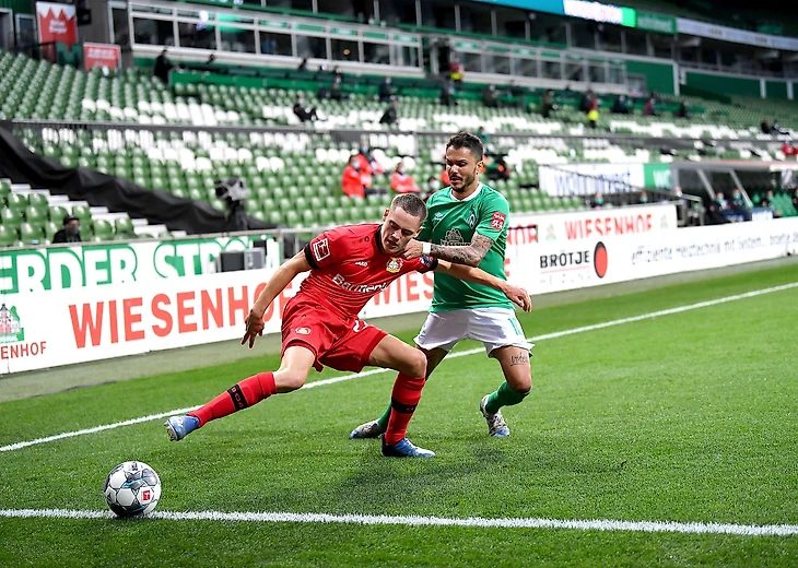 Мне абсолютно случайно удалось запечатлеть дебют Флориана в Бундеслиге. За что спасибо его экс-партнеру по «Байеру» Хаверцу, чья игра меня очень привлекала. Тогда Виртц вышел на позиции правого вингера (в сборной он чаще играет там же), по ходу матча менялся с Диаби флангами, но ничем примечательным не отметился и был заменен на 61 минуте (для дебюта неплохо). С того момента до конца сезона молодой талант появился на поле еще 8 раз и даже забил «Баварии».