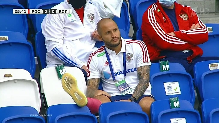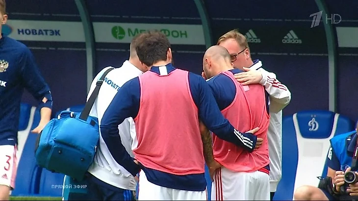 Во втором тайме сборная могла потеряла еще и Баринова (правого центрального в тройке): Дмитрий получил локтем по лицу в единоборстве, его заменили на Дивеева. Хотя тут скорее перестраховка.