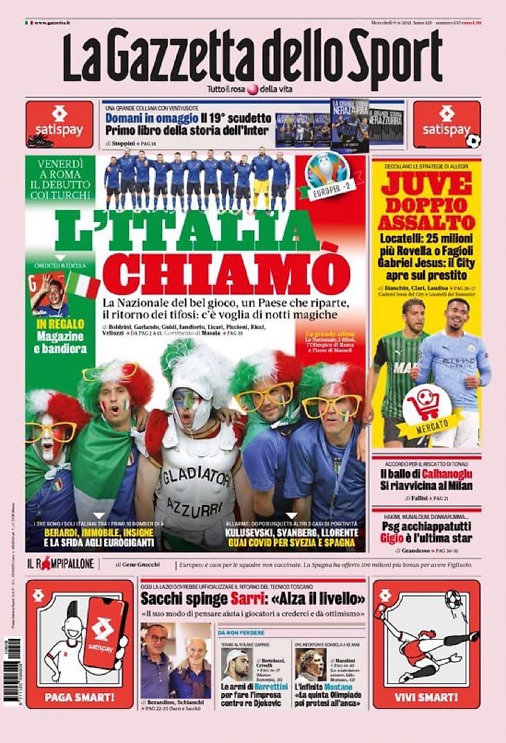 Италия зовёт. Заголовки Gazzetta, TuttoSport и Corriere за 9 июня