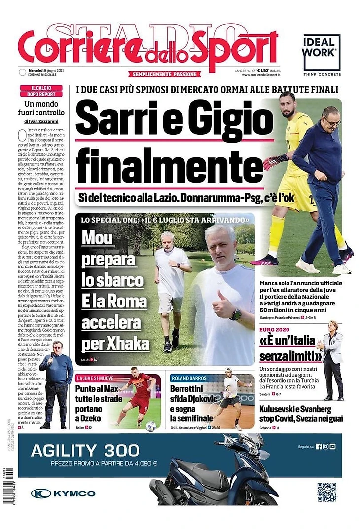 Два самых щекотливых случая на рынке почти на завершающей стадии. Согласие тренера для «Лацио». Доннарумма-«ПСЖ», есть согласие. Отсутствует только официальное объявление по бывшему тренеру «Юве». Вратарь сборной в Париже заработает 60 миллионов за пять лет.