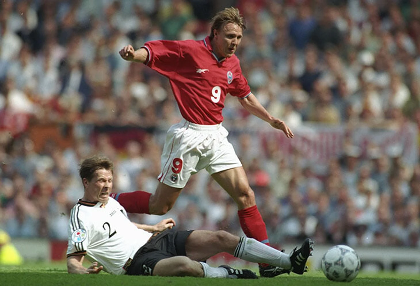 Настроение улучшали и результаты сборной Англии: обыграли испанцев по пенальти, в группе вынесли сборную Голландии 4:1. Надо понимать, как сборная Англии подходила к турниру. Она не попала на ЧМ-1994, провалила чемпионат Европы-92. К 1996-му слезы Газзы на ЧМ-90 уже стали немного забываться, хотя он, конечно, напомнил о себе шикарным голом Шотландии.