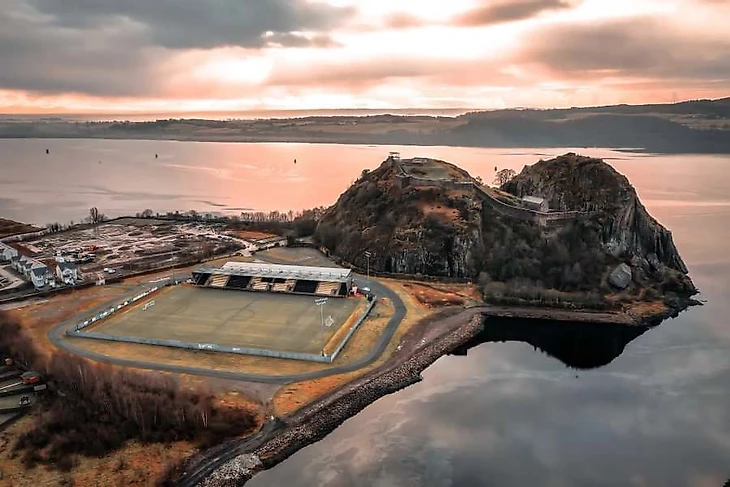 ФК «Дамбартон» из округа Вест-Данбартоншир в Шотландии. Не нон-лига, а даже профессиональный футбол, но оригинальная экскурсия по замку прилагается.