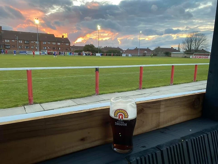 Пивной фотопривет из 11 дивизиона, первого дивизиона Лиги Уирсайда, где начали отмечать пятницу уже в среду. ФК «Дарлингтон Рэйлвей Атлетик», стадион «Бринкбурн Роуд».
