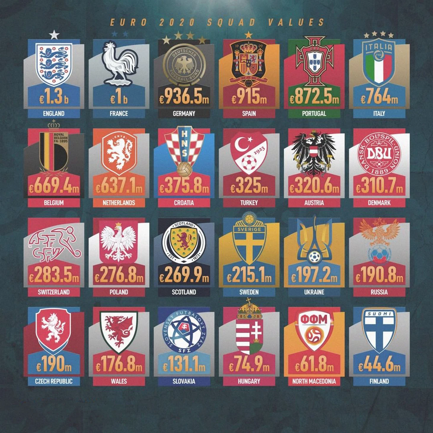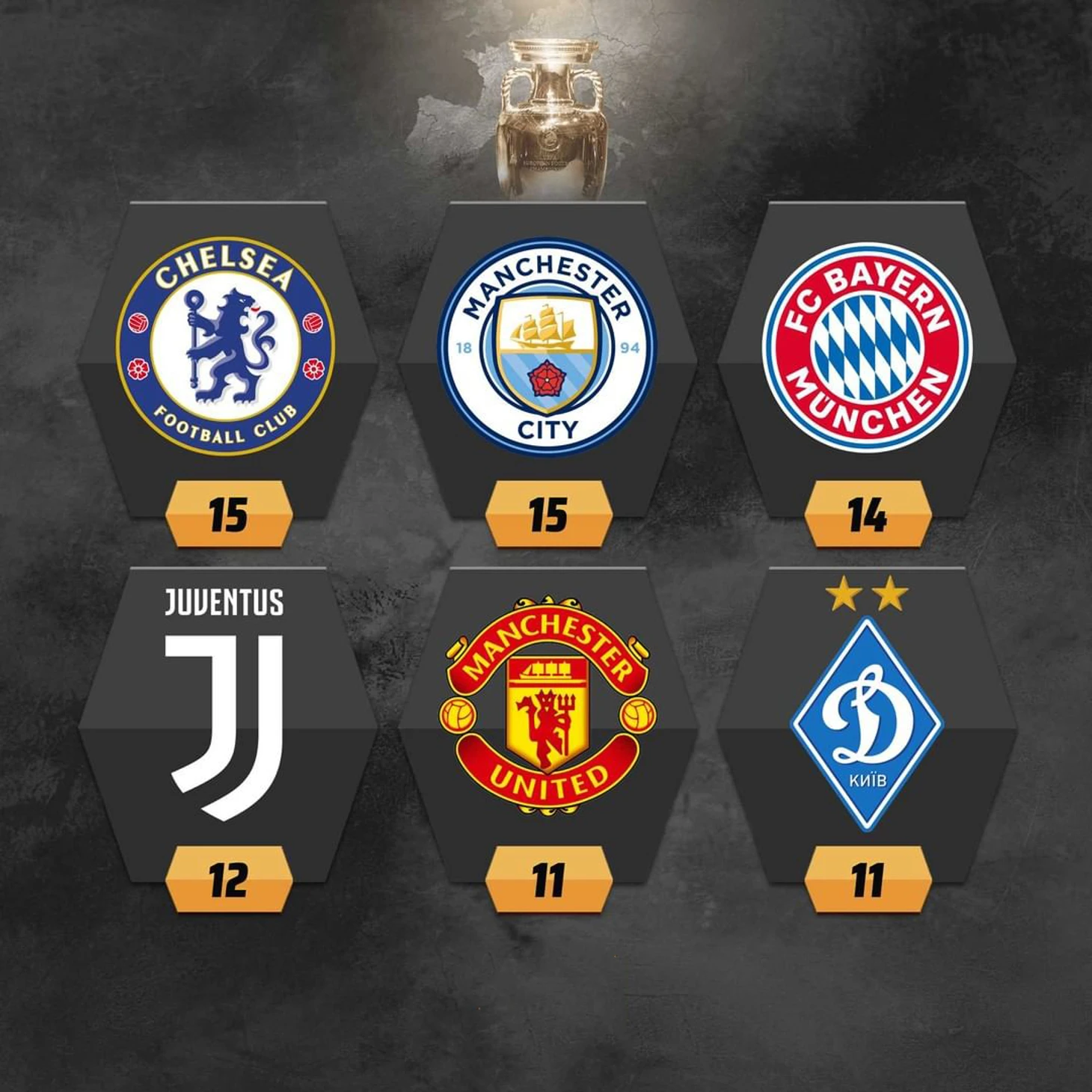 Клубы, с наибольшем представительством игроков на Евро-2020