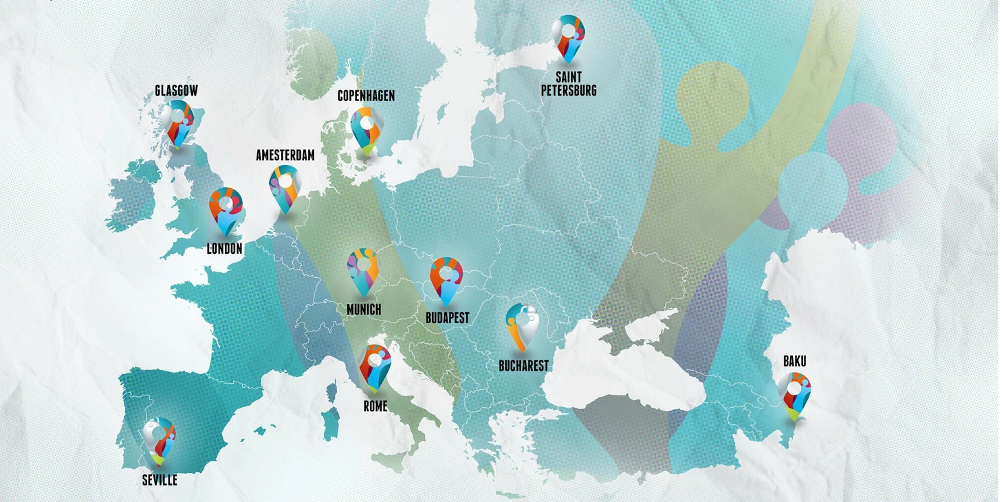 Санкт-Петербург, Глазго, Копенгаген, Амстердам, Лондон, Мюнхен, Будапешт, Бухарест, Рим, Севилья, Баку