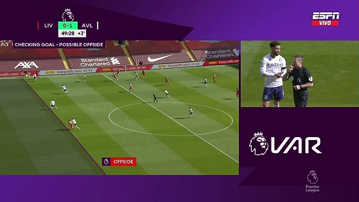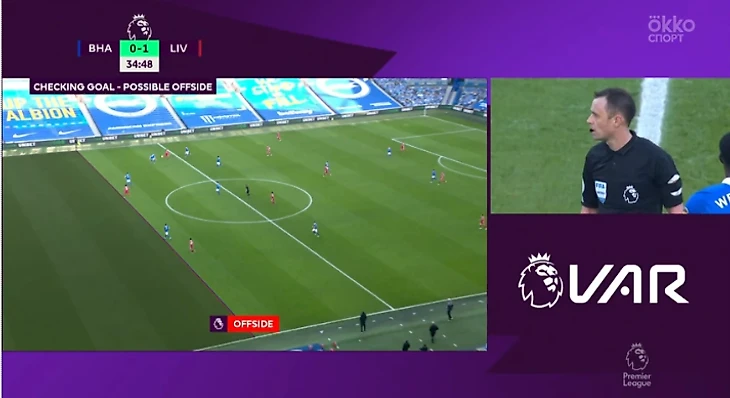На 34-й минуте матча нападающий гостей Мохамед Салах забил гол. Алиссон выбил мяч к центру поля, Фирмино тут же перевёл его на египтянина, тот ворвался в штрафную и покатил мимо вратаря. Однако ВАР вмешался в голевую атаку «Ливерпуля», усмотрев в ней положение вне игры.