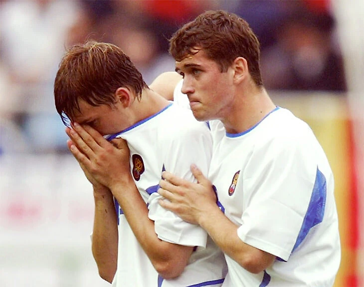 Сначала Весли Сонк забивает с углового. Через четыре минуты – капитан Бельгии, который получил травму, но не попросил замену – Марк Вильмотс. В отчаянии Россия выпускает на поле 19-летнего дебютанта – Александра Кержакова. Он ассистирует Сычеву, но на третий гол России не хватает. После матча плачущего автора гола успокаивает тот, кто ему ассистировал.