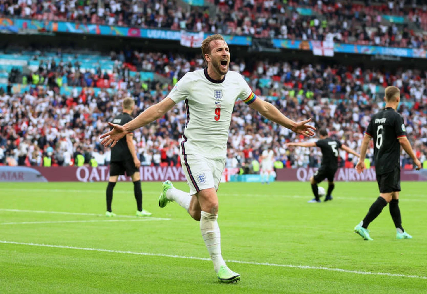 Харри Кейн открывает счет своим голам и приговаривает Германию к выбыванию из борьбы! Люк Шоу перехватил мяч на своей половине поля, оставив в дураках Сержа Гнабри, пробежал далее к штрафной, отдал пас на Джека Грилиша налево, а тот прострелил на Кейна. А время Йоахима Лева истекает, и виноват в этом отчасти Томас Мюллер, не попавший по пустым воротам…
