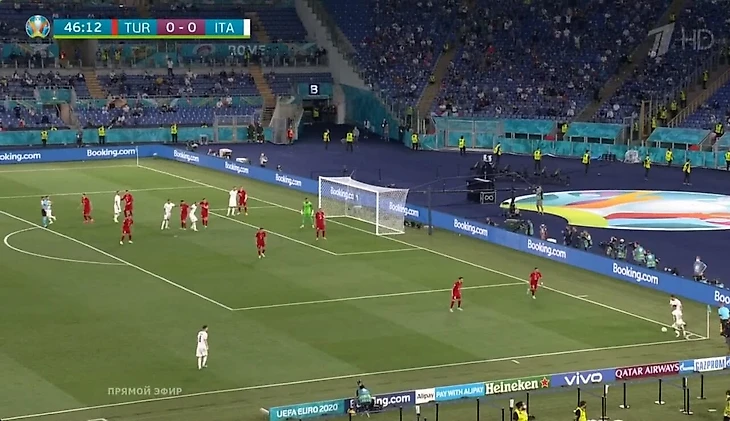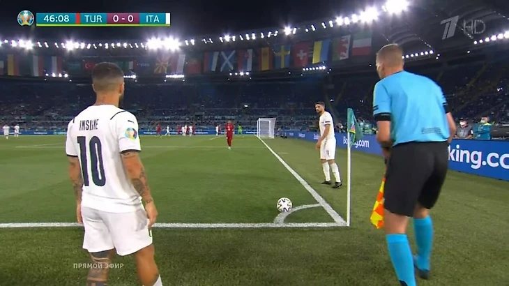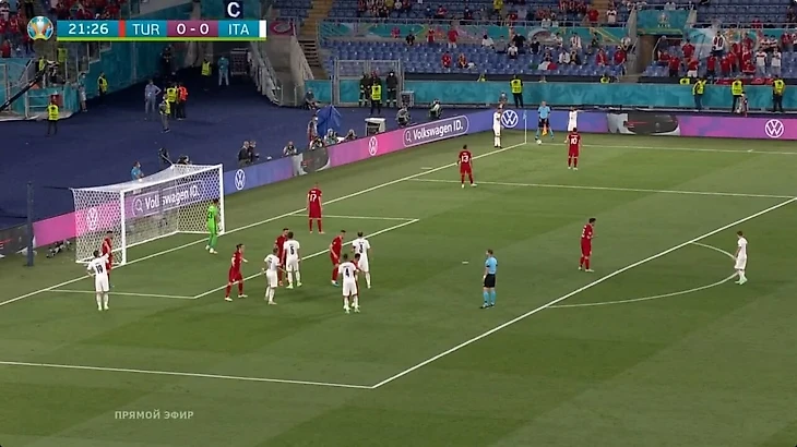 Итальянцы по-особенному подготовилась к угловым в первом матче Евро-2020. С первого тайма к мячу подходили сразу два человека: один готовился подавать, второй вставал за лицевой и перед подачей бежал в штрафную.