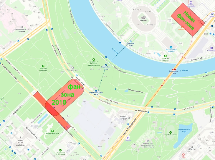 С регистрацией разобрались, но отличия от Чемпионата мира на этом не закончились. Три года назад место для фанатов располагалось между МГУ и смотровой площадкой. Оттуда, кстати, открывается прекрасный вид на Стадион «Лужники» и новую фан-зону.