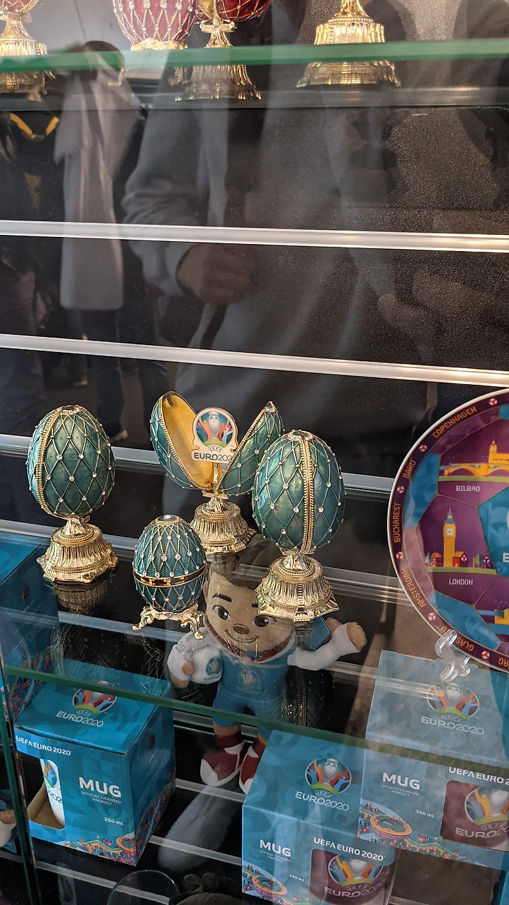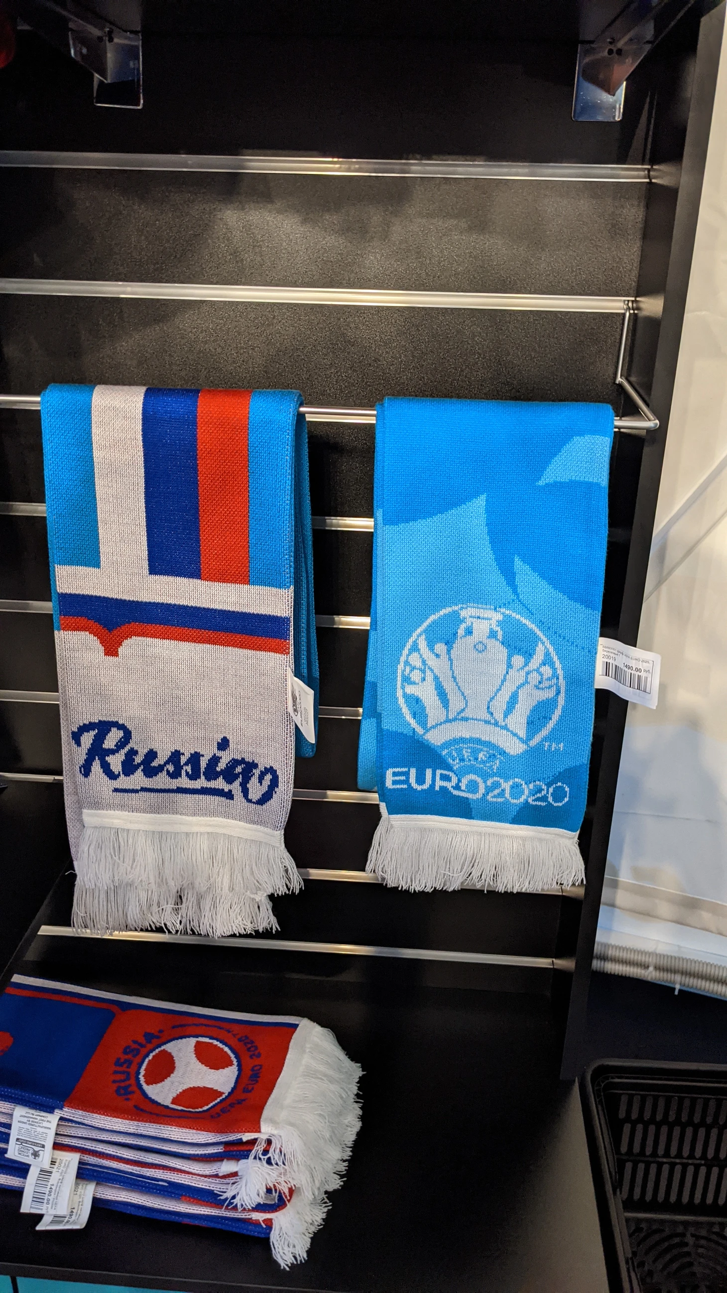 На площади перед стадионом ничего не говорило о том, что скоро здесь что-то начнётся. Не было ни фанатов, ни музыки. С символикой Евро-2020 был лишь указатель.
