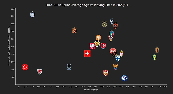 У Англии будет вторая самая молодая команда на Евро после Турции, но в то же время именно футболисты сборной Англии в средней сумме отыграли больше всего минут по ходу прошедшего сезона. Их таланта должно хватить на лёгкий выход из группы, но посмотрим, как сильно отразятся лишние минуты по ходу плей-офф. Отойдя от темы, именно сборная Турции+Украина могут быть «темными лошадками» турнира и преподнести сюрприз. Посмотрим, сбудется ли прогноз.