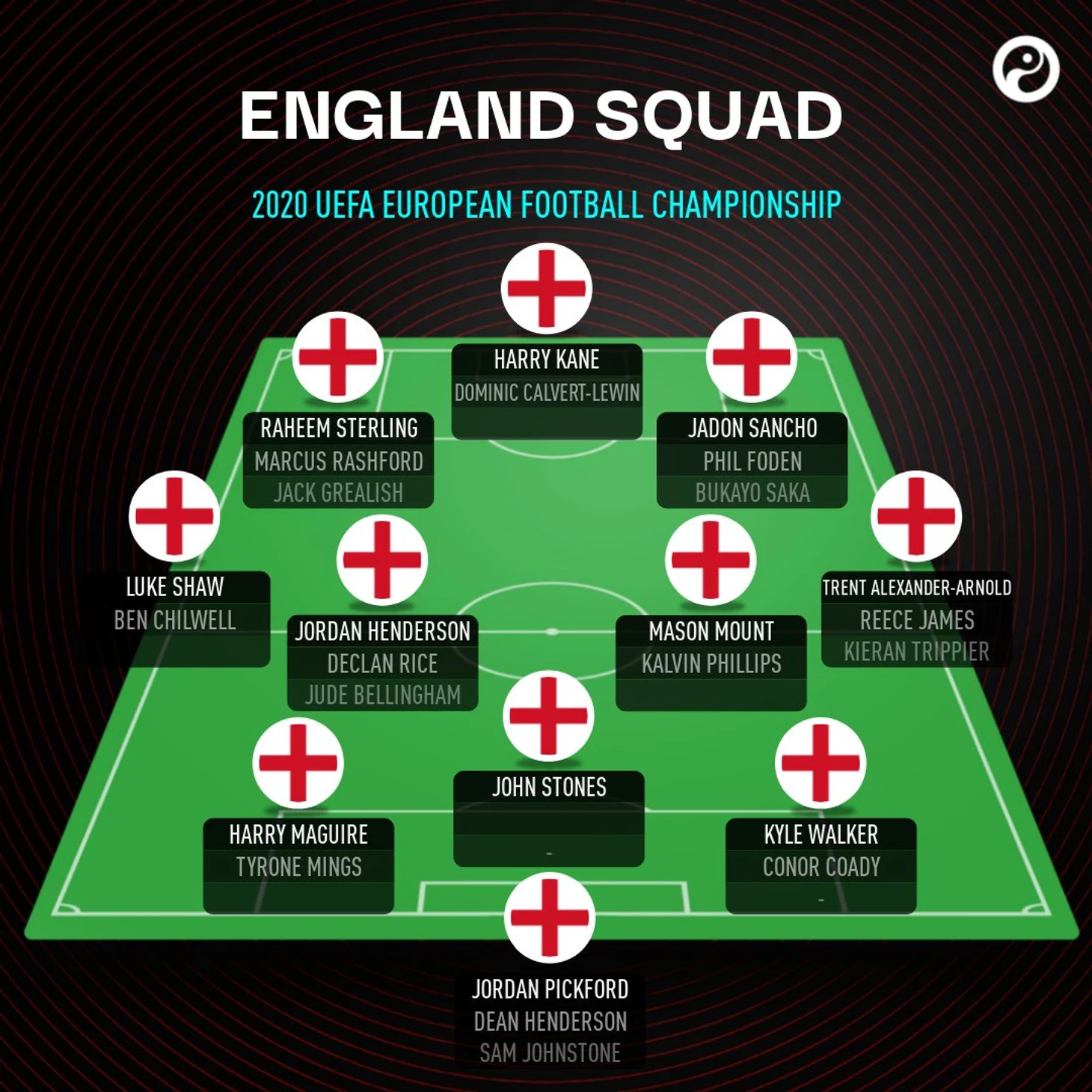 Я не согласен с фото и считаю, что Гарет Саутгейт всё же на Евро будет использовать схему 4-3-3. Конечно же мы помним, что Трент Александр-Арнольд травмирован и его место с правого фланга займет Кайл Уокер. Также у Англии самая сильная полузащита на этом Чемпионате Европы. Маунт, Деклан Райс и Хендерсон в тройке смогут великолепно созидать и разрушать все атаки противника.