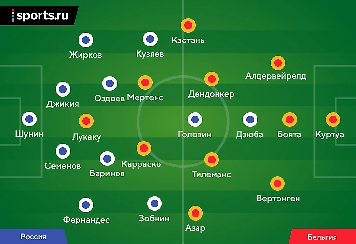 2. Состав Бельгии был ожидаемым с учетом повреждений. Не полностью готовы играть Аксель Витцель, Кевин Де Брюйне и Эден Азар. Все трое – лидеры команды, но Роберто Мартинес не менял систему, а просто заменил их доступными альтернативами.