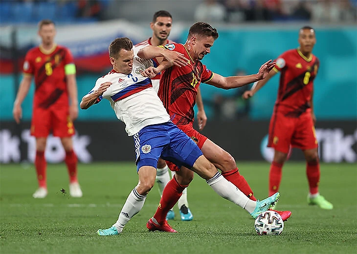 Более того, в опорной зоне был Леандер Дендонкер (хорошо ведет борьбу и имеет опыт игры в ЦЗ) – даже когда Дзюба опускался поглубже, не получалось цепляться за мячи. В редких эпизодах, когда получалось, у Бельгии было преимущество на подборе – Артема поддерживал только Головин.