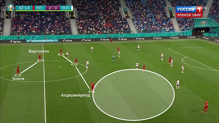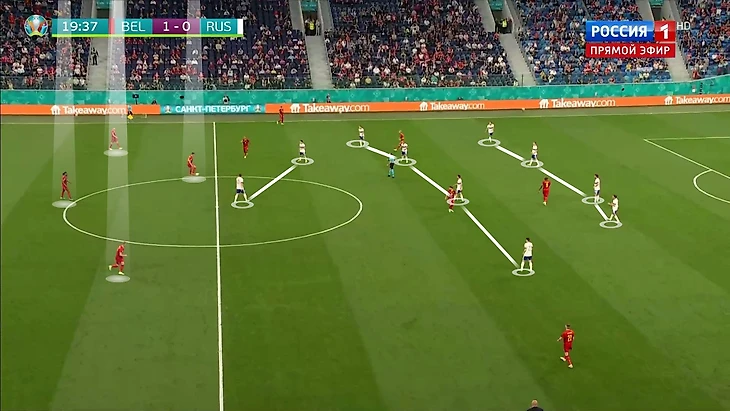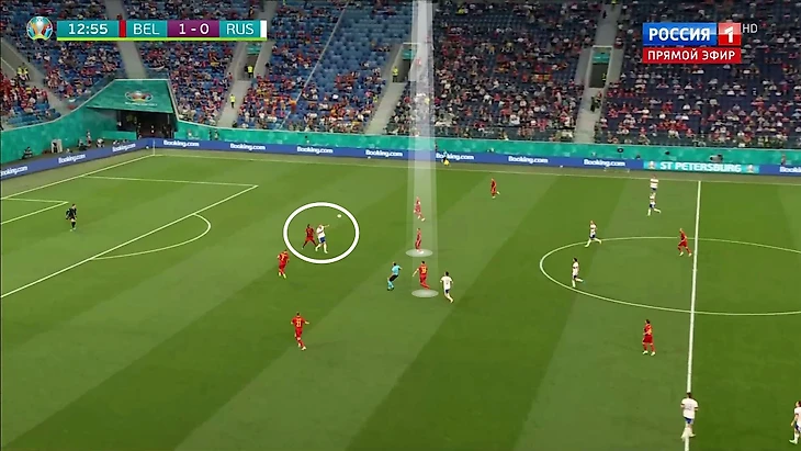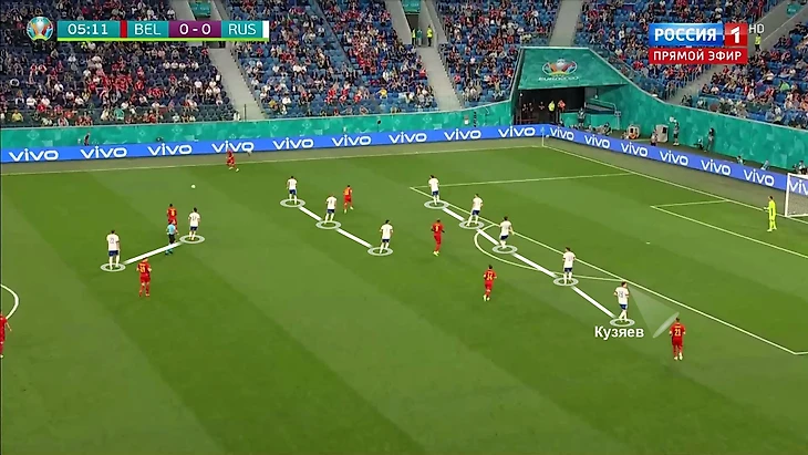 Здесь проявилась зрелость Бельгии. Дело не только в командном умении хорошо держать мяч, но и в том, как они постепенно прочитали перестроения России (персоналки на флангах и более смелый прессинг в центре).