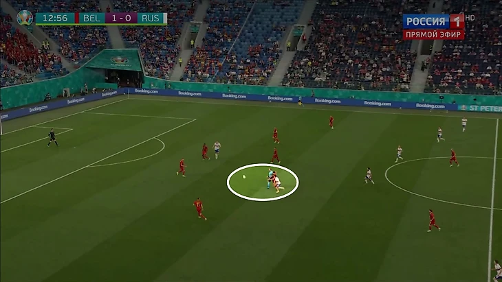 Прессингу не хватало цельности. У Бельгии все равно был свободный игрок в пятерке, которая участвовала в розыгрыше (три защитника и пара опорников) – просто из-за выдвижений Зобнина им чаще оказывался Тилеманс: