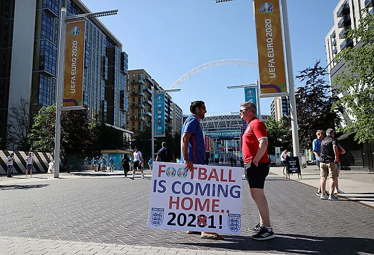 Лондон невероятно ждал этот чемпионат. Изнутри острова и вовсе кажется, что Англия лучше всего готова к Евро: в отличие от континентальной Европы, где весной вводили новые локдауны, здесь ограничений все меньше, вакцинация идет полным ходом (60% населения получили обе дозы, 45% – первую, на прививку начали приглашать возрастную группу 25+), а футбол весь май как мог возвращал зрителей. Финал Кубка Англии и последние туры АПЛ прошли с болельщиками, и футбол снова задышал и запульсировал.