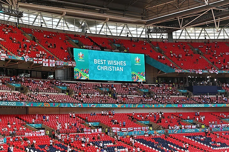 А громче всего трибуны отреагировали на объявление, посвященное Кристиану Эриксену: «Уэмбли» зашелся овацией, а на секторах были видны майки «Тоттенхэма» с фамилией футболиста.