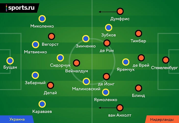 Несмотря на эпичное возвращение и несколько неплохих атак Украины, не стоит обманываться насчет общего содержания игры. Нидерланды были гораздо конкретнее: 15-7 по ударам, 7-4 – из штрафной (плюс 6 ударов с линии штрафной), 1,39-0,4 по ожидаемым голам (xG). К тому же команда Шевченко несколько раз подставила себя: во время голевых атак Украина ошибалась не только позиционно, но и индивидуально (Бущан неудачно выбил мяч на ногу Вейналдуму, а Миколенко не прервап передачу де Йонга, плюс Матвиенко ассистировал Вегортсу).