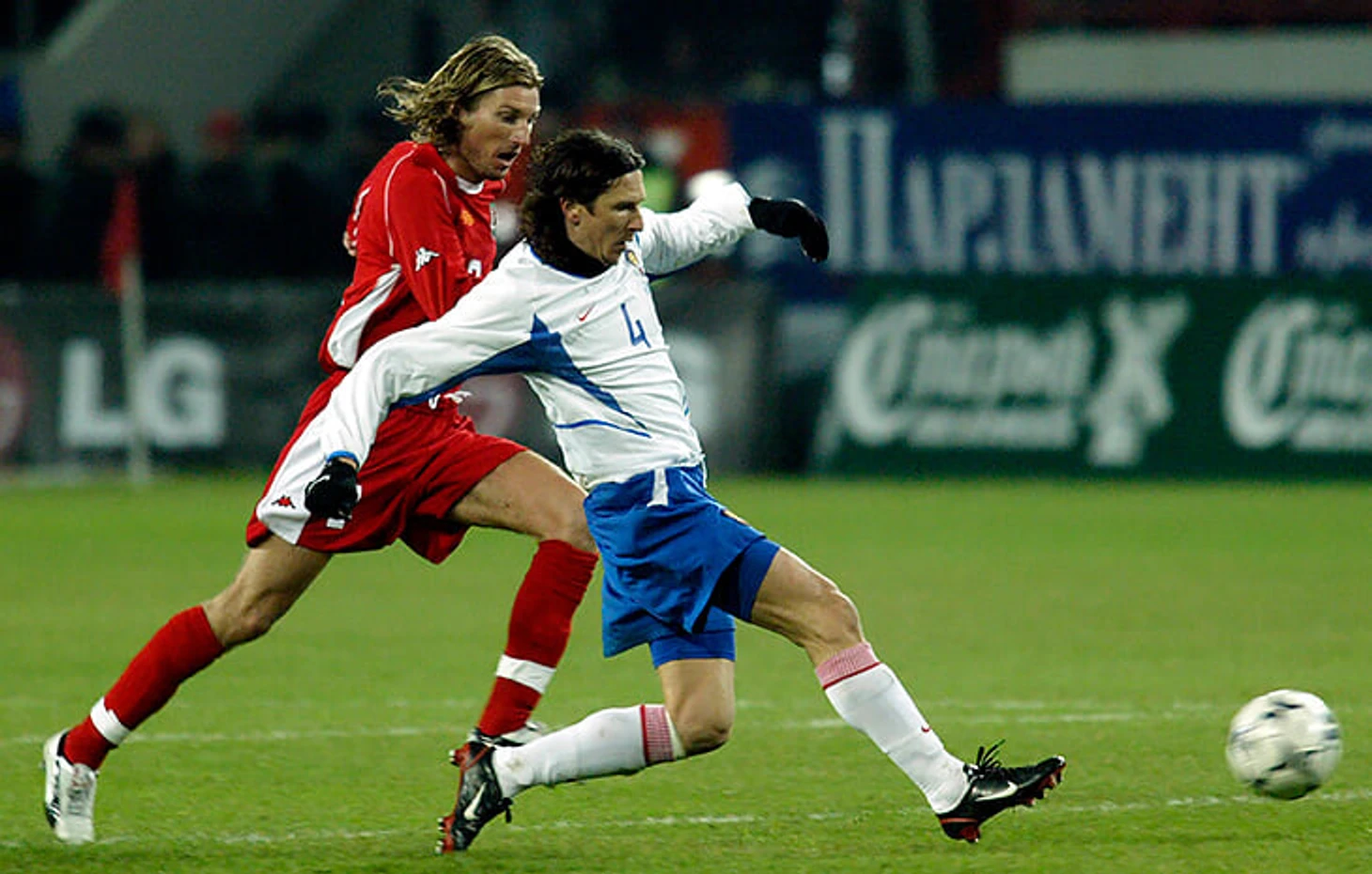 Было очень интересно играть против 18-летнего Криштиану Роналду. Уже тогда стало понятно, что парень изменит историю футбола. Встречать его с мячом – невыносимо. Даже если ты берешь зазор, плассируясь, у него в любом случае остается вариант обыграть тебя за счет скорости и сумасшедшего рывка. Поэтому с Роналду нельзя оставлять одного опекуна – их должно быть минимум двое. На Криштиану я заработал вторую желтую, из-за которой пропустил матч с Грецией.
