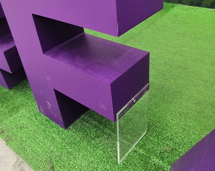 У буквы F смещен центр тяжести, поэтому приделали такую штуку, чтобы она не падала.